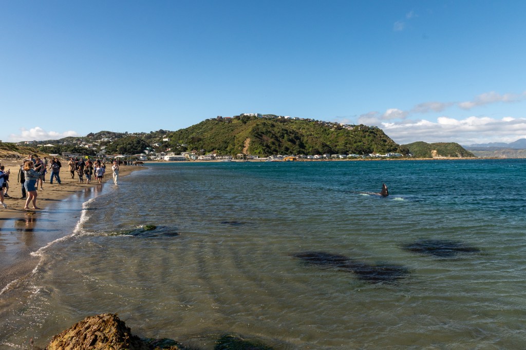 It timed nicely with the school holidays, and as they cruised along Island Bay beach only meters from the shore, kids were running along the sandy beach beside them, giddy with the excitement of seeing such large marine mammals up close.