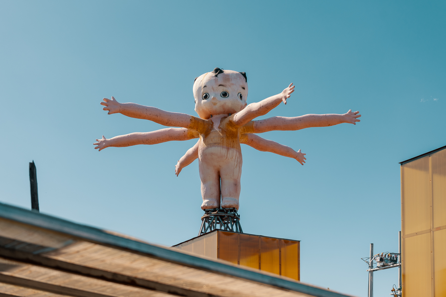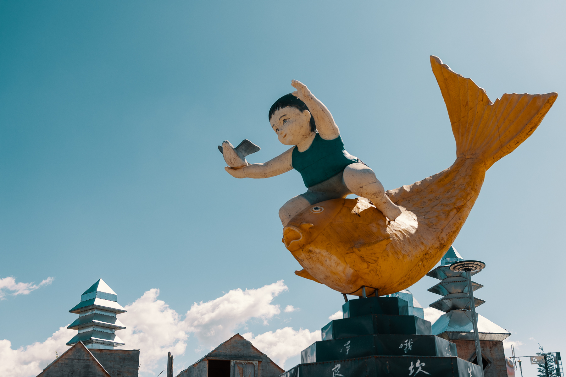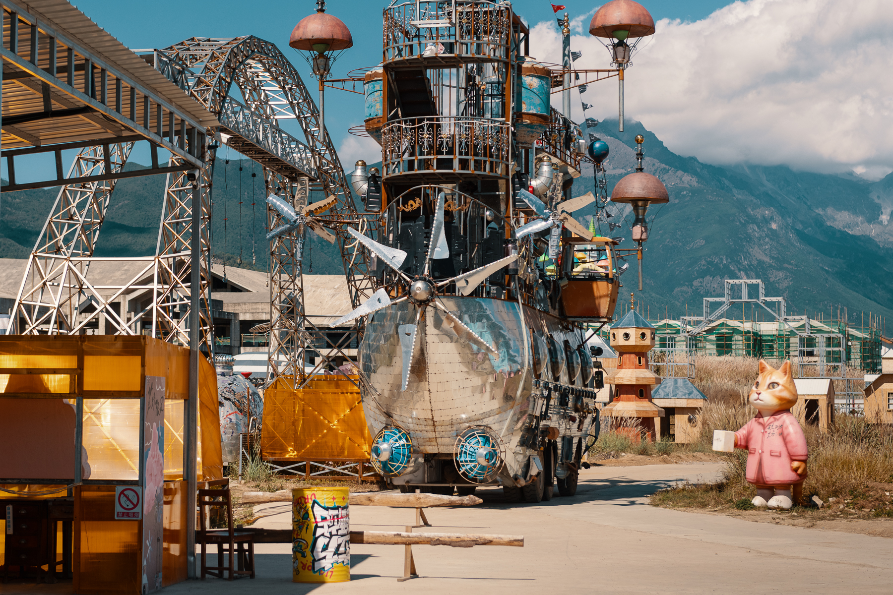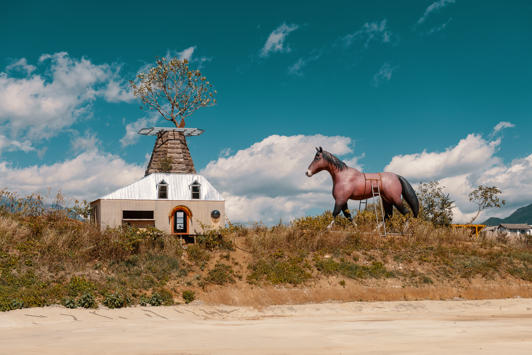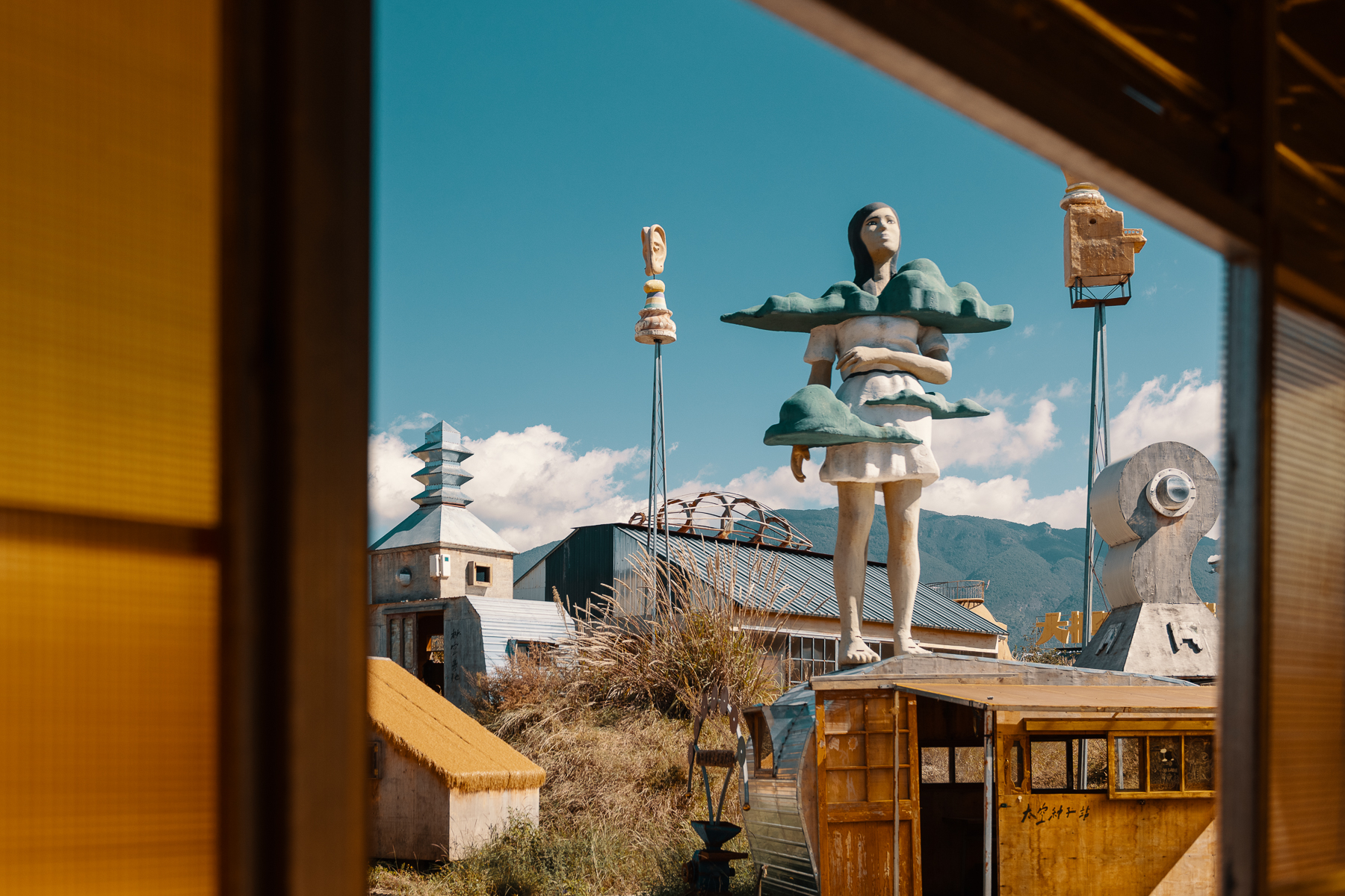 Here’s a small collection of photos taken at the ‘Land of Wilderness’ in Yunnan Province. We spent hours wandering and taking photos at this wonderful art park that was created by singer and folk artist Qiao Xiaodao back in 2020. It’s made largely from scrap and recycled materials and as well as the whimsical sculptures, there are also a number of small abandoned buildings that look like they date back to the previous use of the large site, maybe for growing? Some are empty whilst others have old electronics, mannequins or furniture inside, and add to the overall ramshackle, slightly mysterious and un-curated nature of the park, it’s full of surprises at every turn.