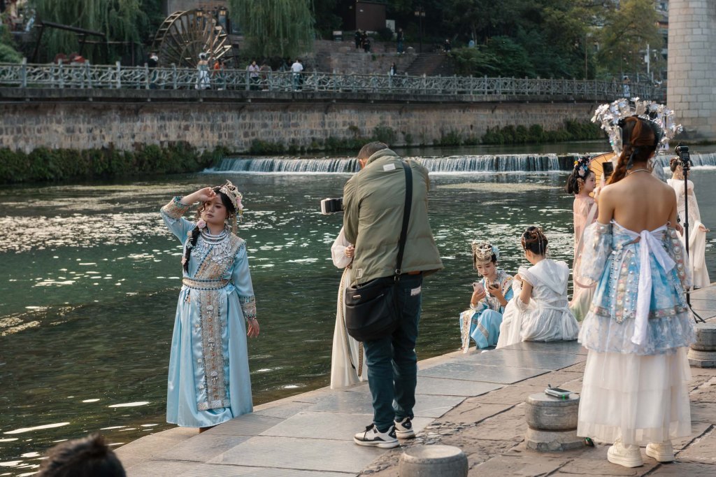 This hugely popular activity is kind of part fashion spectacle, part cosplay adventure and part love letter to 5,000 years of culture. Every day, thousands rent elaborate traditional outfits and after professional hair and makeup, spend hours striking dramatic poses in the ancient cobblestone alleys and stone bridges chasing the perfect shot for Tik Tok and Xiaohongshu (China’s Instagram).
