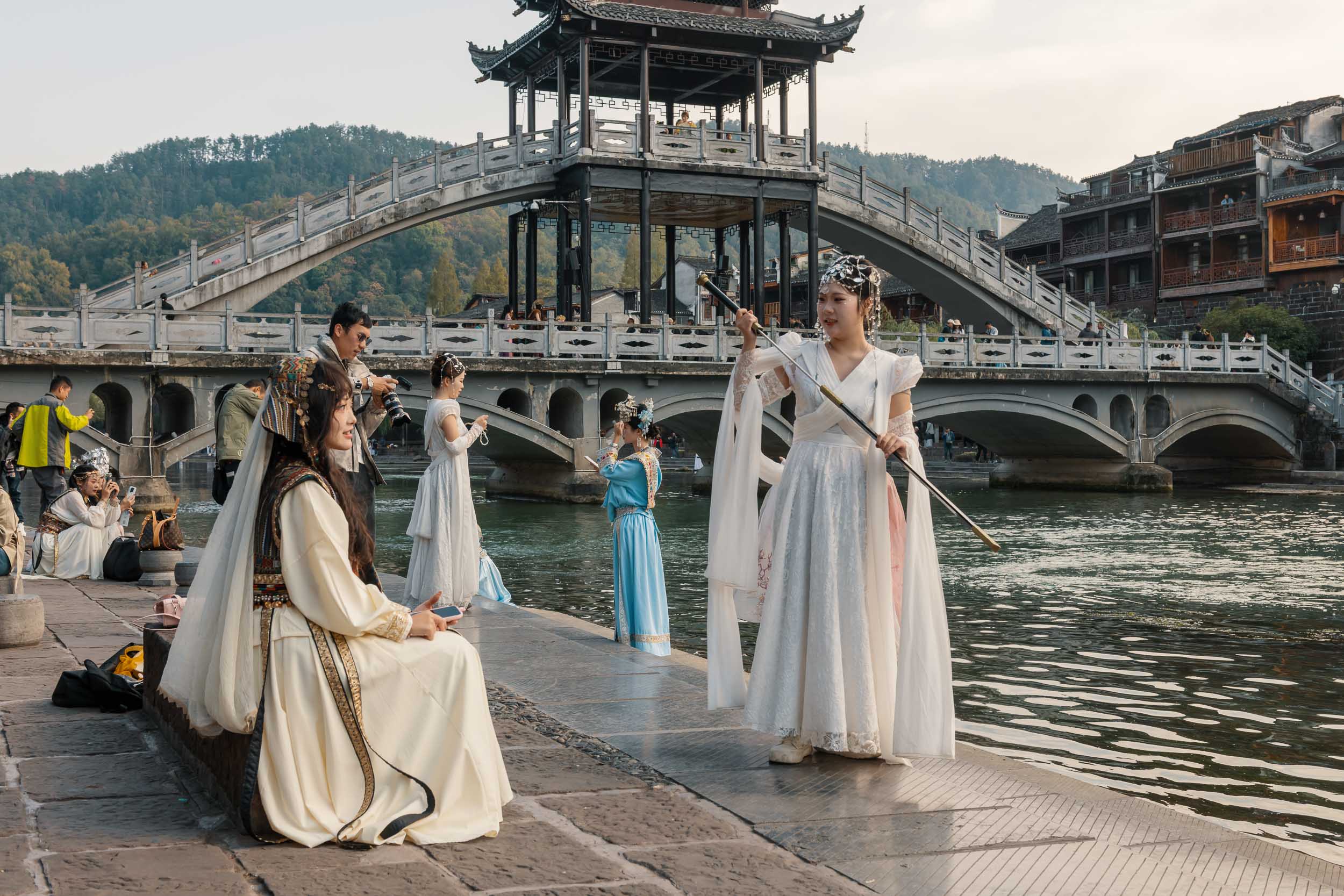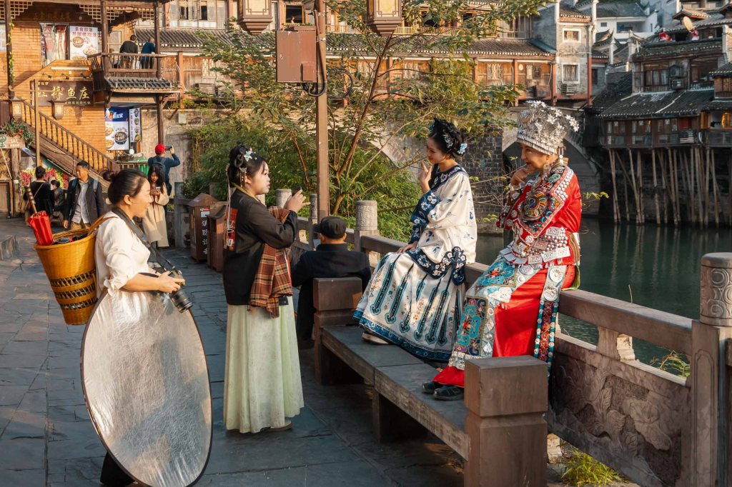Here’s a series of documentary photos I shot in China exploring the cultural phenomenon known as Hanfu photography. Also known as “Guachao” or “National Trend” photography, the picturesque Hunan town of Fenghuang is one of China’s epicenters, and its streets and riverside are awash with participating domestic tourists.