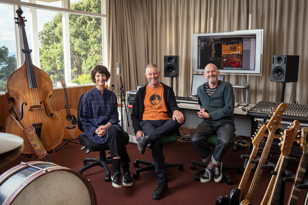 No better place for a shoot of talented film composers (Plan 9 -aka David Donaldson, Janet Roddick and Steve Roche) than an unused swimming pool, church and a really nice studio filled with interesting looking instruments.