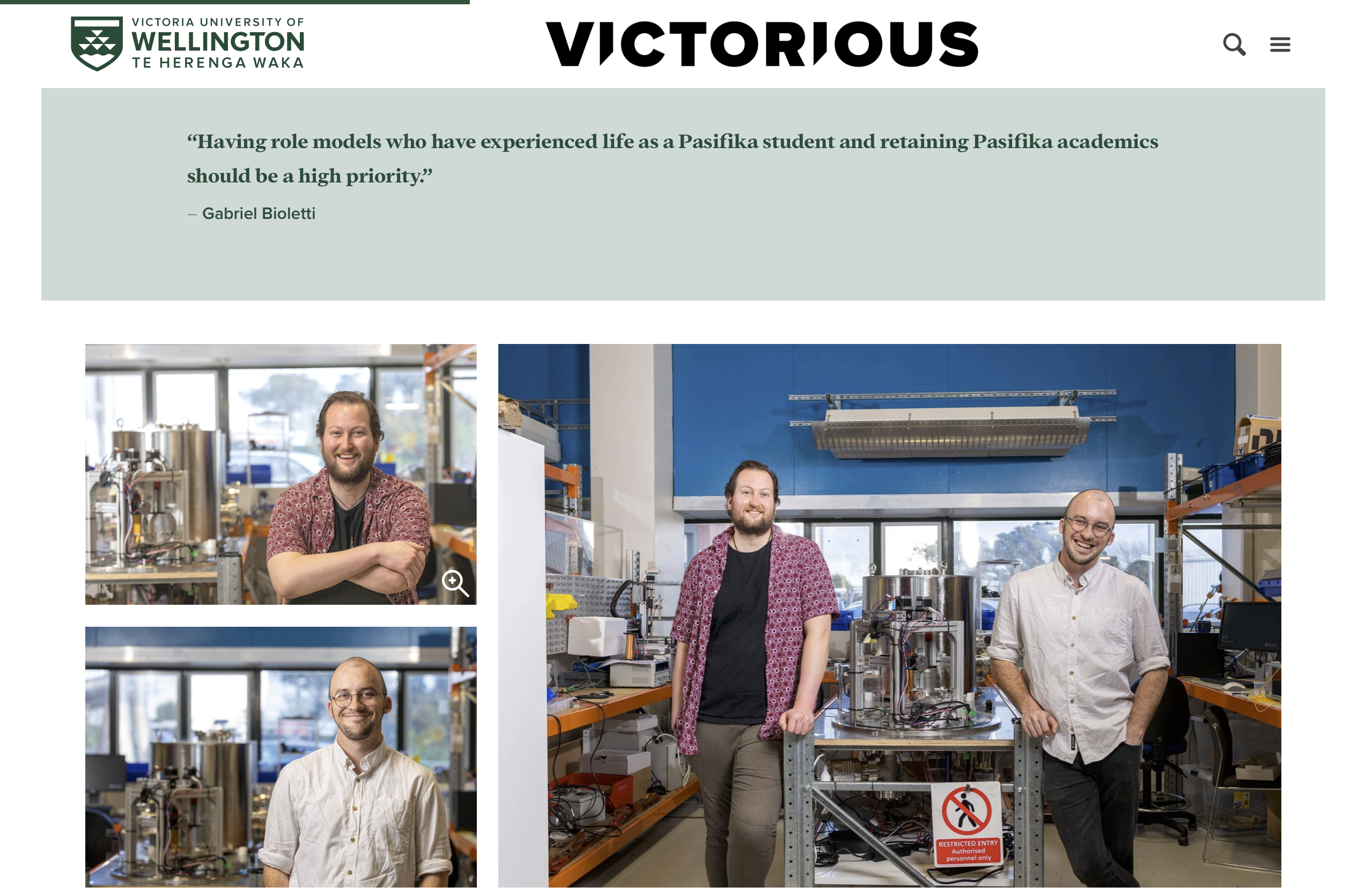 And the second is for a story about the universities support of Maori and Pasifika students in STEM subjects (Science,Technology,Engineering,Mathematics)- featuring physics post grad students Tane Butler and Gabriel Bioletti .